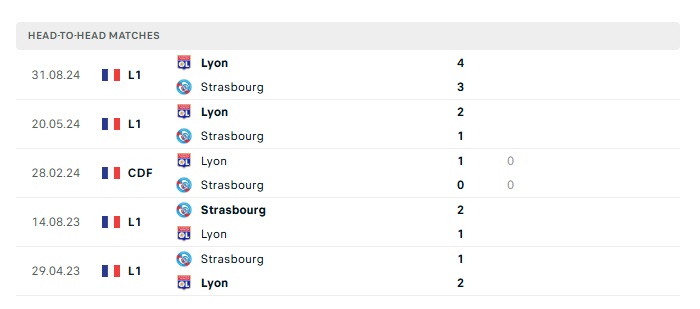 Lịch sử đối đầu Strasbourg vs Lyon