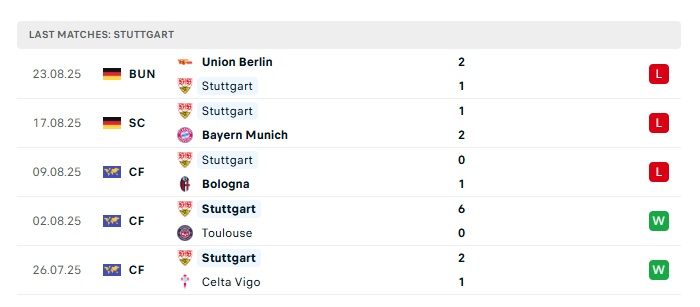 Phong độ gần đây Stuttgart  vs Monchengladbach