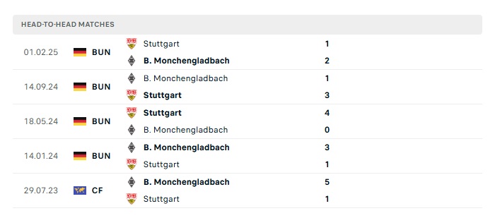 Lịch sử đối đầu Stuttgart vs Monchengladbach