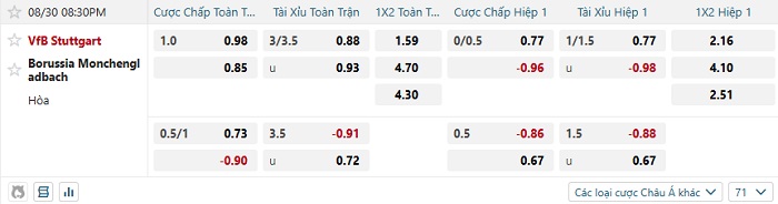 Bảng kèo bóng đá Stuttgart vs Monchengladbach