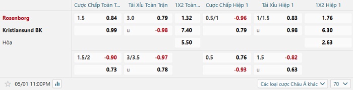 Tip kèo Châu Á hiệp 1 Rosenborg vs Kristiansund