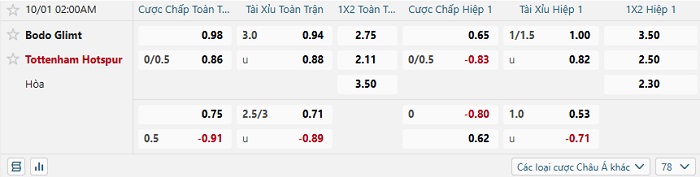 Tip kèo Châu Á hiệp 1 Bodo Glimt vs Tottenham