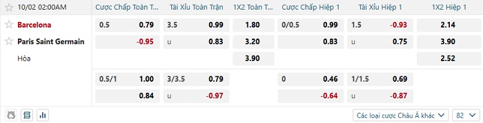Tip kèo tỷ số Barcelona vs PSG