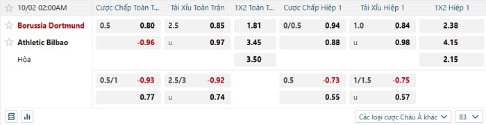 Tip kèo Châu Á full trận Dortmund vs Bilbao