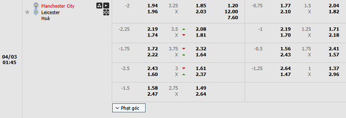 Tip kèo Châu Á hiệp 1 Man City vs Leicester