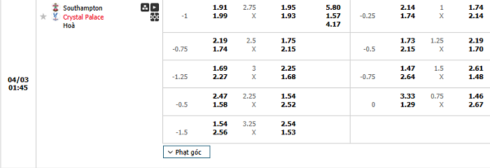 Tip kèo Châu Á full trận Southampton vs Crystal Palace