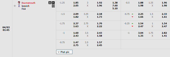 Tip kèo Châu Á full trận Bournemouth vs Ipswich