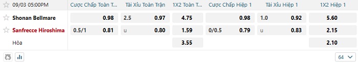 Tip kèo Châu Á full trận Shonan Bellmare vs Sanfrecce