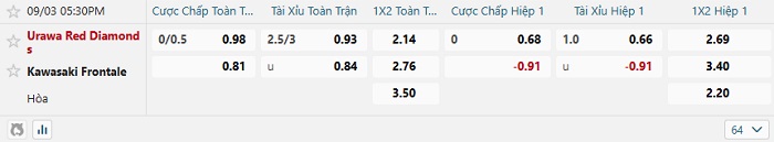 Tip kèo Châu Á hiệp 1 Urawa Red vs Kawasaki Frontale