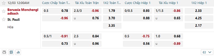 - Dự đoán tỷ số hiệp 1: Monchengladbach 0 – 0 St. Pauli