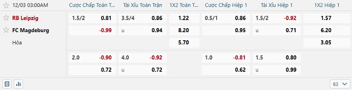 Tip kèo Châu Á hiệp 1 Leipzig vs Magdeburg