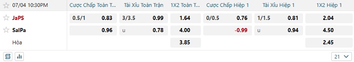 Tip kèo Châu Âu JaPS vs SalPa