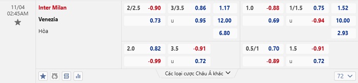Tip kèo Châu Á full trận Inter Milan vs Venezia