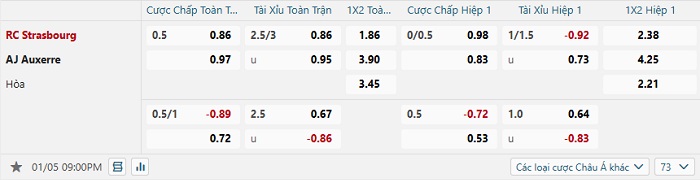 Tip kèo Châu Á hiệp 1 Strasbourg vs Auxerre