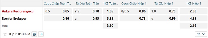 Tip kèo Châu Á hiệp 1 Ankara Keciorengucu vs Esenler Erokspor