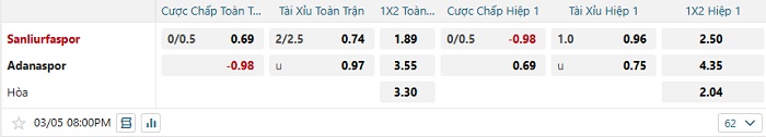 Tip kèo Châu Á hiệp 1 Sanllurfaspor vs Adanaspor