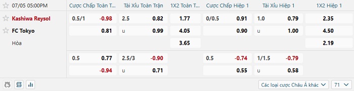 - Dự đoán tỷ số hiệp 1: Kashiwa Reysol 1 – 0 FC Tokyo