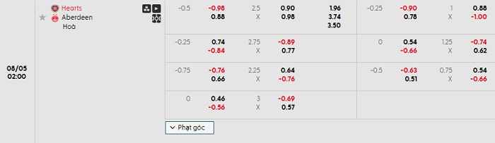 Tip kèo Châu Á full trận Hearts vs Aberdeen
