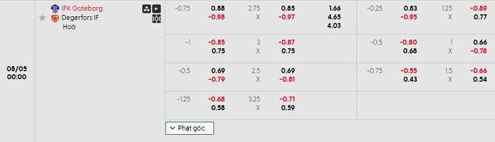 Tip kèo Châu Á full trận Goteborg vs Degerfors