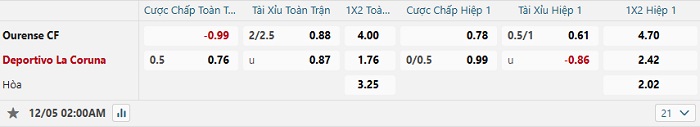 Tip kèo Châu Á full trận Ourense vs La Roruna