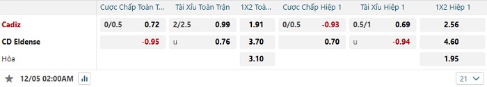 Tip kèo Châu Á hiệp 1 Cadiz vs Eldense