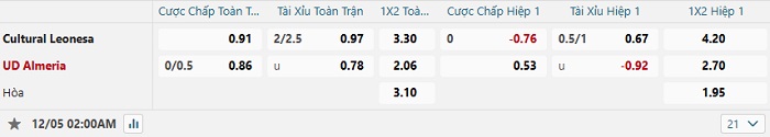 Tip kèo Châu Á full trận Leonesa vs Almeria