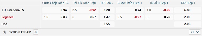 • Dự đoán tỷ số hiệp 1: Estepona 0 – 1 Leganes