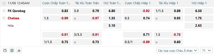 Tip kèo Châu Á hiệp 1 Qarabag vs Chelsea