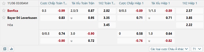 Tip kèo Châu Á full trận Benfica vs Bayer Leverkusen