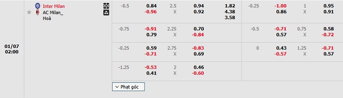 Tip kèo Châu Á hiệp 1 Inter vs AC Milan