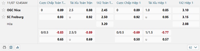 Tip kèo Châu Á full trận Nice vs Freiburg