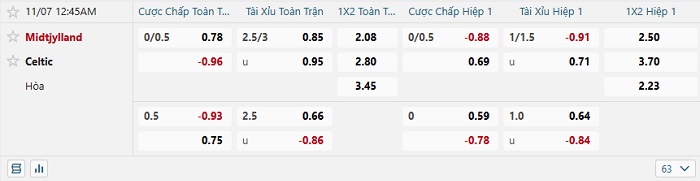 Tip kèo Châu Á full trận Midtjylland vs Celtic