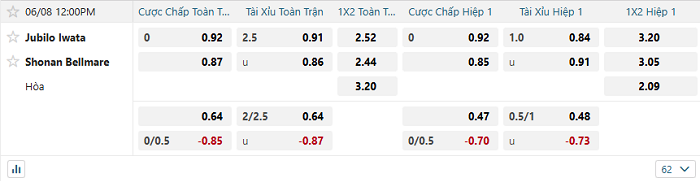 Nhận định trận đấu Jublio vs Shonan Bellmare: Dù bị đánh giá thấp hơn đối thủ nhưng với lợi thế sân nhà, Jublio vẫn sẽ có được 1 điểm trước Shonan hôm nay. Ở mức chấp ưu ái +1/4, đội chủ nhà vẫn sẽ là lựa chọn an toàn nhất. Ngoài ra thì lối chơi có phần thận trọng của cả hai sẽ khiến cho trận đấu này không có nhiều hơn 2 bàn thắng.