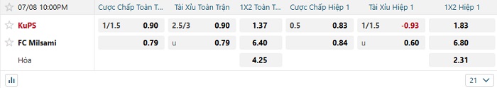 Tip kèo Châu Á full trận KuPS vs Milsami