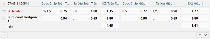 Tip kèo Châu Á full trận FC Noah vs Buducnost