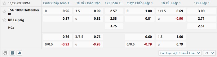 Tip kèo Châu Á hiệp 1 Hoffenheim vs Leipzig