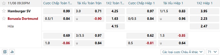 Tip kèo Châu Á hiệp 1 Hamburger vs Dortmund