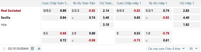 Tip kèo Châu Á full trận Real Sociedad vs Sevilla