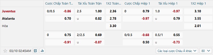 Tip kèo Châu Á full trận Juventus vs Atalanta