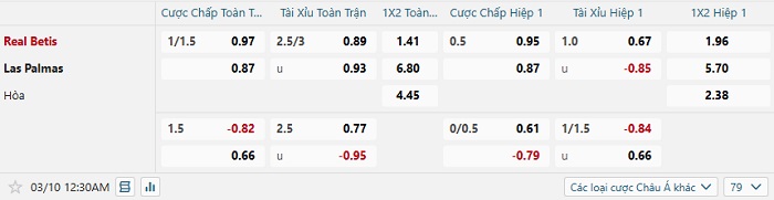 Tip kèo Châu Á full trận Real Betis vs Las Palmas