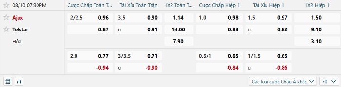 Tip kèo Châu Á full trận Ajax vs Telstar