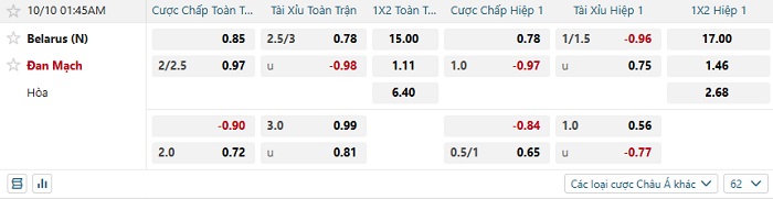 Tip kèo Châu Á hiệp 1 Belarus vs Đan Mạch