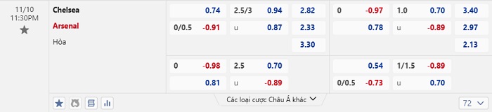 Tip kèo Châu Á full trận Chelsea vs Arsenal