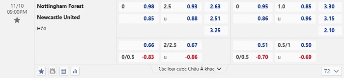 Tip kèo Châu Á full trận Nottingham vs Newcastle