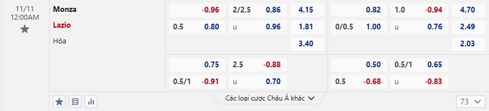 Tip kèo Châu Á full trận Monza vs Lazio