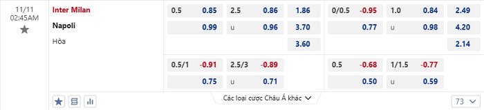 Tip kèo Châu Á full trận Inter Milan vs Napoli