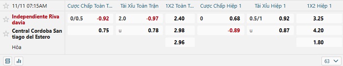 Tip kèo Châu Á full trận Rivadavia vs Central Cordoba