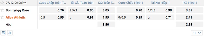 Tip kèo Châu Á full trận Bonnyrigg Rose vs Alloa Athletic