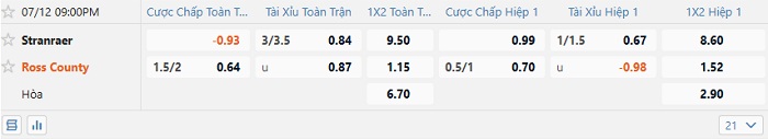 Tip kèo Châu Á full trận Stranraer vs Ross County