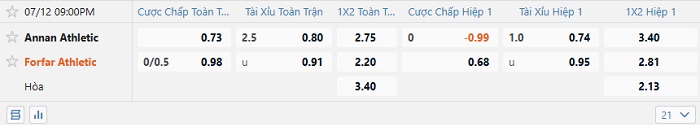 Tip kèo Châu Á full trận Annan Athletic vs Forfar Athletic